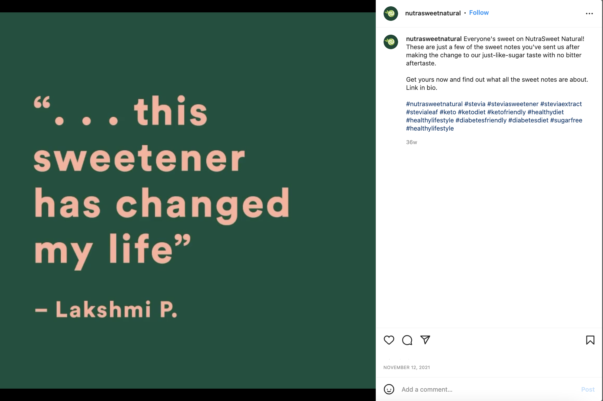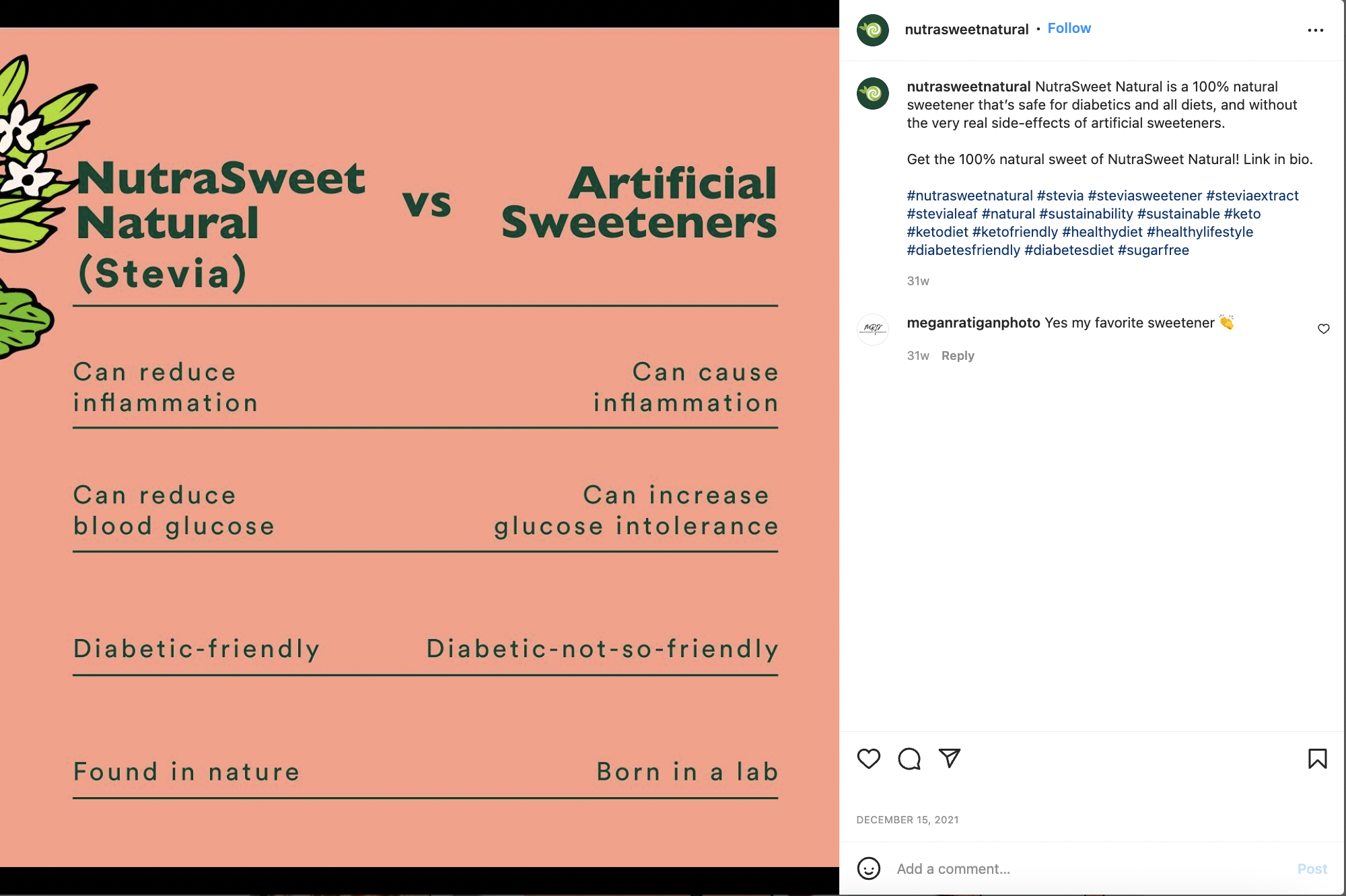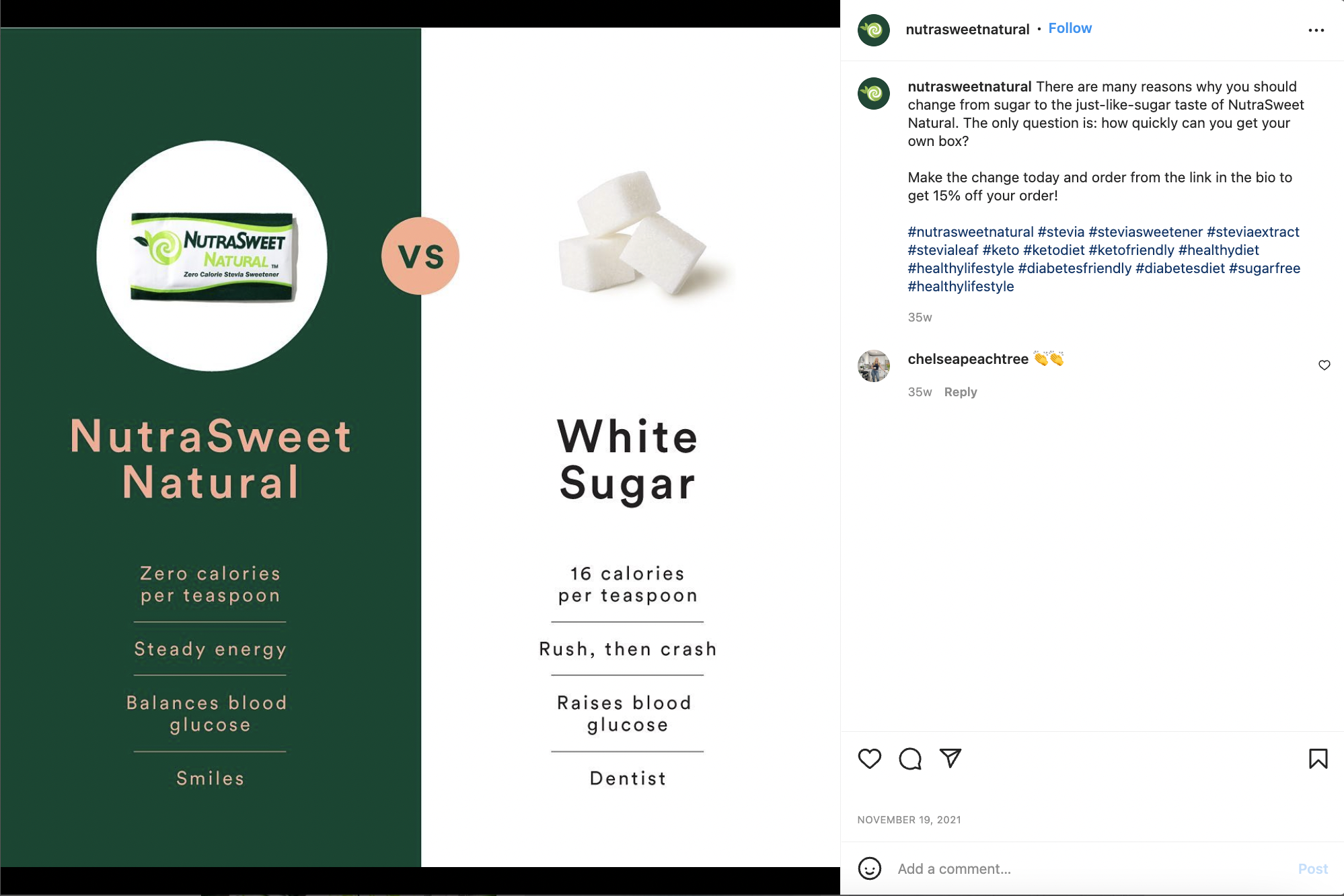 Our client, NutraSweet Naturals, was bringing a new, multi-purpose stevia-based sweetener to market. I worked with their marketing director to create a social media campaign on Facebook and Instagram (Oct. 2021-Jan. 2022 & March 2022) to develop brand awareness and sales of their everyday sweetener. I created copy and concepts alongside images and animations created and hand-drawn by one of our graphic designers. Posts can be found here.